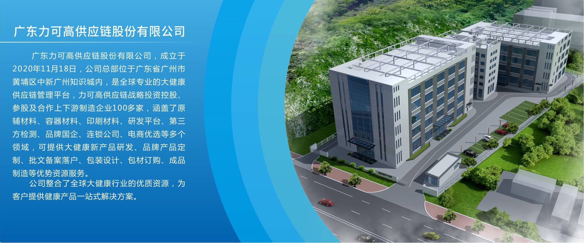 廣東力可高供應(yīng)鏈股份有限公司,成立于2020年11月,位于廣州市黃埔區(qū)中新知識(shí)城,公司注冊(cè)資本6000萬(wàn)元。      力可高供應(yīng)鏈,作為一家在供應(yīng)鏈領(lǐng)域嶄露頭角的創(chuàng)新型企業(yè),正憑借其卓越的專(zhuān)業(yè)能力與不斷進(jìn)取的精神,重塑行業(yè)格局。已發(fā)展成為以生物醫(yī)藥大健康行業(yè)為核心,以投資并購(gòu)、供應(yīng)鏈集采、供應(yīng)鏈金融、品牌運(yùn)營(yíng)及跨境電商為一體的生物醫(yī)藥大健康產(chǎn)業(yè)鏈現(xiàn)代化企業(yè)。      力可高供應(yīng)鏈自成立以來(lái),始終秉持“高效、協(xié)同、創(chuàng)新、共贏”的經(jīng)營(yíng)理念,專(zhuān)注于生物醫(yī)藥大健康供應(yīng)鏈管理的全流程優(yōu)化,致力于為客戶(hù)提供一站式、定制化的供應(yīng)鏈解決方案。先后投資設(shè)立成長(zhǎng)力國(guó)際控股、修···